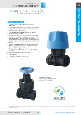 All metal, rubber, and coatings used have been designed for contact with water for human consumption, pursuant to the terms of Italian Health Ministry decree