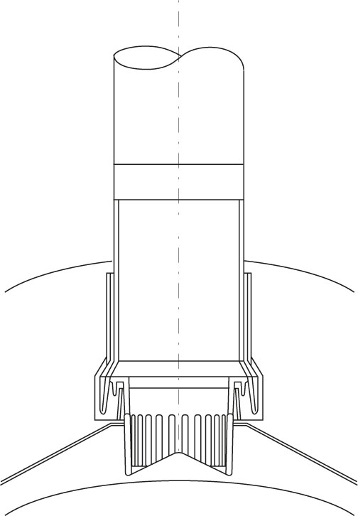 • Garantisce un sicuro e durevole ancoraggio al voltino di calcestruzzo, un perfetto accoppiamento con la canaletta e l’isolamento elettrico tra tubo di sfiato e condotta.